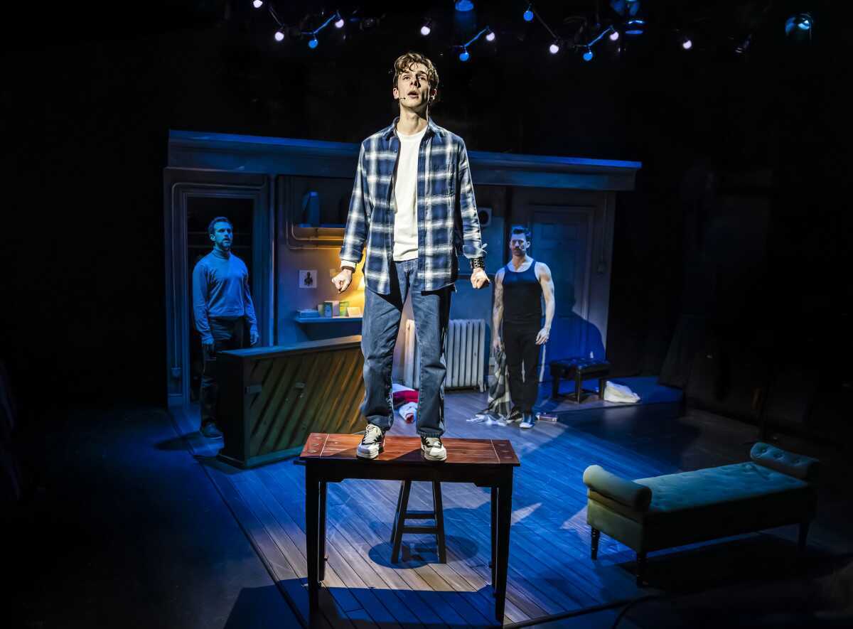 Past and present collide in a theatrical self-reckoning as the two versions of Levi bring to life past memories and the three men morph through dozens of characters powered by a score that soars from gospel tambourine to tender ballad.